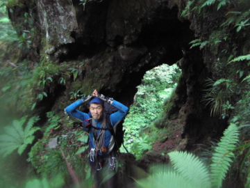 | このあたりは泳いで泳いで泳ぎまくり | 高巻き途中に岩のトンネルを抜けた |