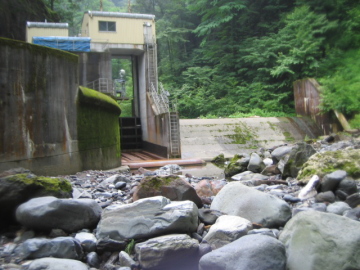 | 取水堰堤を越えると・・・ | 兵衛谷は本来の水量になる |