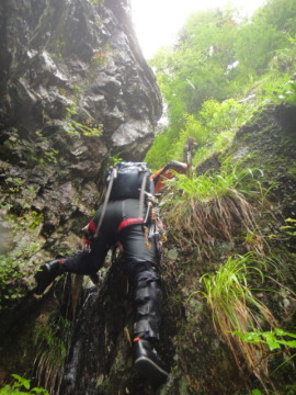 ナイフリッジを登るはっしー 5m滝は滝身の右を登る