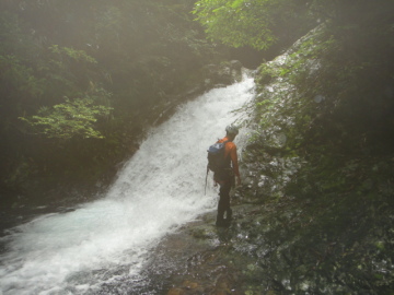 5m斜瀑は滝身の右横を登るがぬるぬるしてるのでタワシが活躍。落ち口で水流をまたいだとき足が滑り落ちるかと思った。