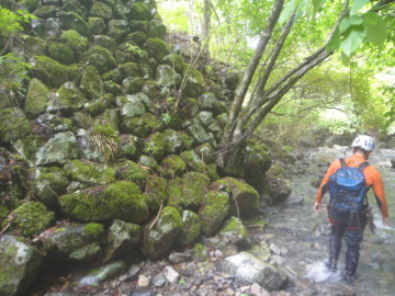 岩壁の上に上がると簡単に6m滝落ち口に降りることが出来た。(高巻き25分)