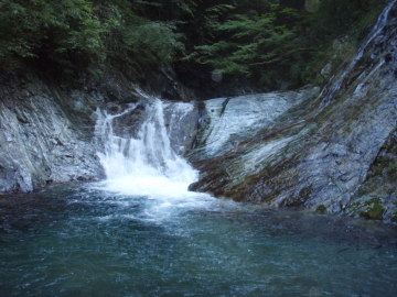 | 自然林の美しい渓相が続く | 犬取滝の下段 2段12m |