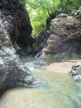 | そろそろゴルジュ帯も終わりそう | 斜度が出てきて滝場が多くなる | |
