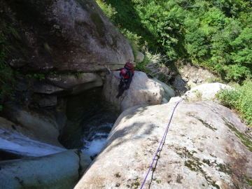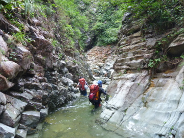 | 懸垂下降した2段滝 | 金蔵沢出合でテン泊 |