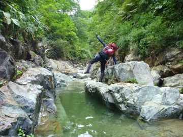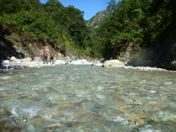 | 入渓点は平凡な河原 | ゴルジュ帯が始まる | |