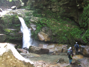 | ゴルジュ内は快適に楽しめる | 夫婦滝左又(カリヤス谷)18m滝 |