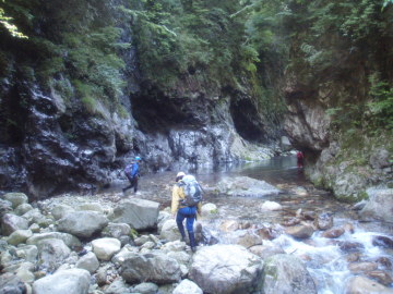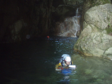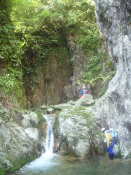 | 車止め(7:15)--南谷出合(8:00)--片口谷出合(9:10)--CS6m滝(9:20/13:35)--お花谷出合(15:20)--15m滝(15:40)--お花谷出合(16:10)--片口谷出合(18:00)--南谷出合(18:55)--車止め(19:20) |