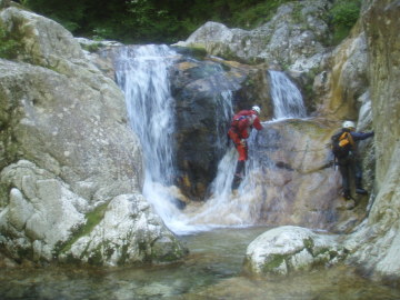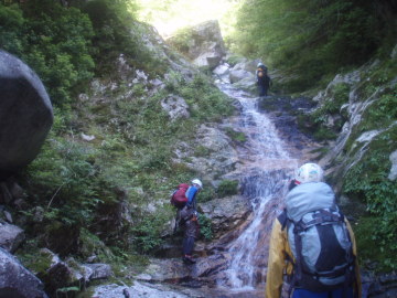 | 5m滝は右壁から | 基本的にぬるぬるしてるところが多い |