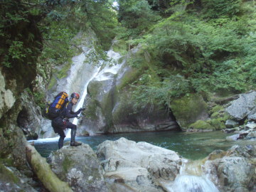 | 4m滝は右壁バンドを登る | CS2m滝 |