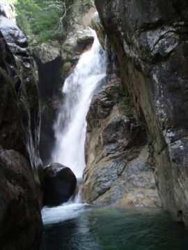 | 横からの滝15mは右巻き | 大ゴルジュに入った♪ |