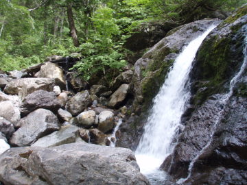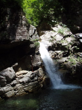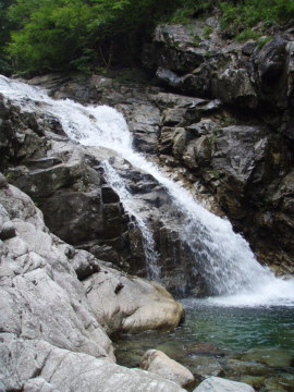 | ナメ床の先に40m直瀑 | 1710m付近出合5m滝 |