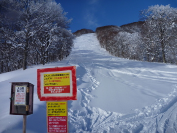 | 黒姫高原スノーパーク(9:25)---旧ゲレンデTOP(10:00)---外輪山(11:30)---ドロップポイント(11:50/12:20)---林道(13:30)---黒姫高原スノーパーク(13:50) |