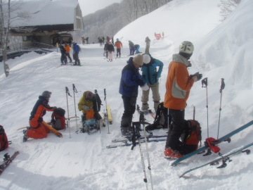 | ゲレンデTOPで準備 | まだまだ藪が多い |