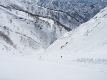 | 米子沢に滑り込む私 | 上部はまずまず |
