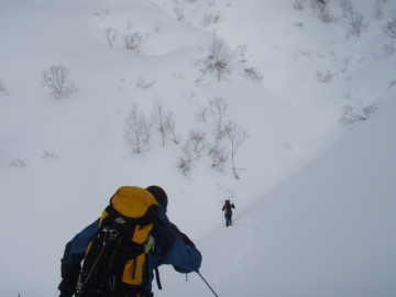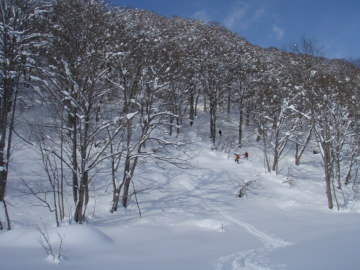 | 雪は多くはないが滑りは問題なさそうだ | ゲレンデからすぐに谷の横断がある |