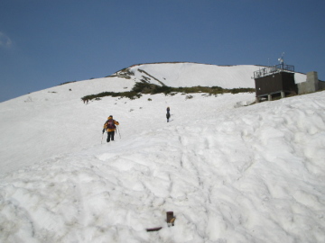 | ブーツが合わず苦労しているこてっちゃんも11時ジャストに2361mピークにたどり着くことができた。 全員揃ったところで滑降準備に入る。 滑り出しは風の影響で固めな雪質なので慎重にスタート。 風に煽られながらの滑降だ。 稜線から外れると風はおさまり快適までとはいかないが適度な雪質に。 かと言ってかっ飛ばせるような技術は持ち合わせてはいないのでトロトロとターンしながら滑る。 なんと沢が狭まってくるところで早くもデブリ登場(T◇T) デブリ様は我が物顔で沢の中心部を占領していて僕たちは遠慮がちに端っこを斜滑降で滑るしか選択の余地なし。 たまに出てくるスペースでちょこっとターンを楽しむ以外はしゃかっこー!! 途中、先行のシュプールについていくと谷からどんどん離れていってしまい、あわてて引き返した。 どうやら隣のガラガラ沢にトラバースした人達のシュプールのようだ。 ひとり遅れてしまった。。みなに追いつけるか?? 谷にもどるとやはりデブリデブリ状態。 しばらく滑るとこてっちゃんが板をふっとばしながらコケているのを発見。 みんなに追いついて安心する。 デブリはそのまま唐松沢の出合までつづいていた。。 ここで南滝の処理をどうするか・・・ 滝が出てなければ沢どおしに滑れるが、今回は安全策で高巻くことにする。 まずは板をはずして右手の小尾根にあがる。 ここで板をつけて反対側に滑り出すがここもデブリが〜 南滝の下まで横滑りを強いられる。。 で、ここからのデブリがもっとひどく右から左から溢れている。。 もうかんべんしてください・・・ 先行者のシュプールをなぞりながらなんとか滑るが何度もデブリに突っ込みひっくりかえる。。 ようやくデブリ地帯を越えるとそこはすでに奥の二股だった。 もう滑降終わりじゃん。。 堰堤を二つ越えて広い河原を過ぎ、まだ雪のつながっている湯入沢を渡ったところで林道に入る。 板を外したりつけたりしながら1時間弱でクルマの置いてる二股まで戻った。 楽しめたのは上部だけで中盤以降はずっとデブリとの格闘でした。 まあこういうときもあるかあ〜 |
