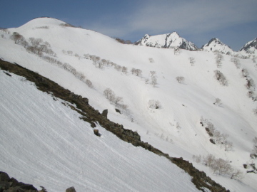 | 五竜岳(手前)&鹿島槍(左奥) | 目指す2361mピーク |