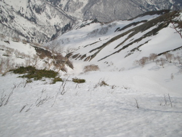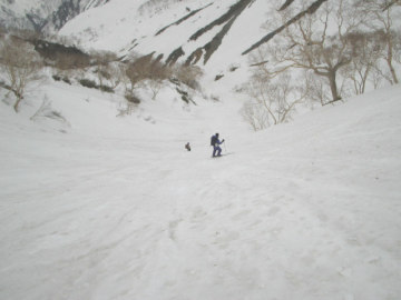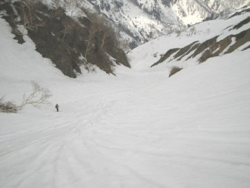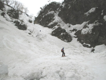 | 沢の中心めがけて滑り降りる | この辺りまでは快適 |