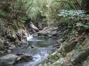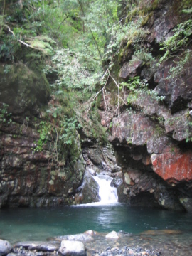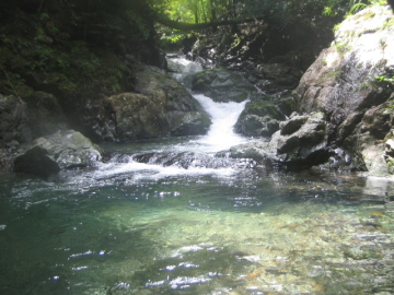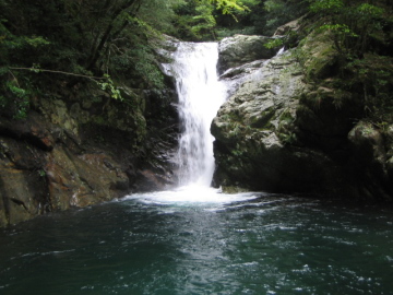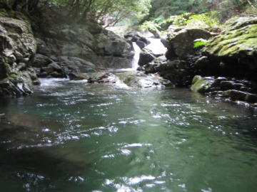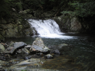 | 林道ゲート(7:10)---行合(8:10)---50m滝(8:50)---蛇の目滝(8:40)---二俣(12:10/13:30)---林道ゲート(14:25) |