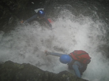 | ここも泳いで滝身に取り付く | がんばる二人!! |