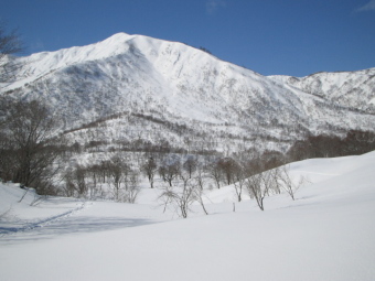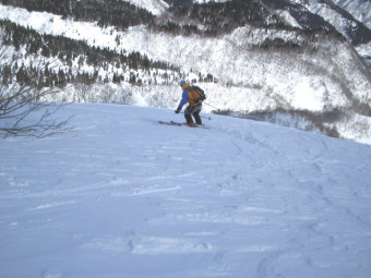 昨年も滑りおりたのだが北東尾根はとても気持ちがいい。30度ほどの快適な広い斜面がずっとつづいていく。