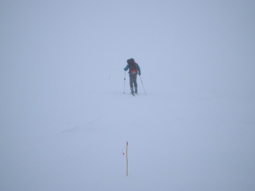 | 2月の週末、信州で関東チームと合流することになった。 当初は妙高周辺で予定していたのだが、またしても今年一番の寒波到来(><) ホントに今年は一番によくあたる。。 なので荒れ荒れの信越国境を避けて中信のあたりで遊ぶことにした。 初日は乗鞍高原温泉スキー場から乗鞍岳を目指す。 しかし集合が遅くなってしまったので行けるところまで行こうということにして出発。 リフトを三本乗り継いでゲレンデTOPへ。 位ヶ原までは切り開きのコースになっていてあまり面白くない。 たんたんと登って行く感じだ。 位ヶ原手前の斜面まできてやっと単調から開放。 しかしこのあたりから強風を直接受けることになる。 あたりはガスで真っ白。 ガリガリのアイスバーン。 厳冬期の乗鞍岳だから仕方ないか^−^; はぐれないようにバラバラで登っていたメンバーを集結して固まって移動することにする。 真っ白の強風の雪原を進む。 どこまで登っても真っ白。 気温はマイナス15度を下回ってる中でこの強風(T◇T) だめだこりゃ。。 肩ノ小屋口のバス停(2610m付近)を確認して現在位置を特定。 大ちゃんはまだまだ登りたそうだったがここで中止を決定。 ひそかに登頂を狙っていたたかやんも残念そうだ。 近くの小屋の陰で行動食をかじり、滑降の準備。 視界が無いので位ヶ原を降りるまではバラバラにならないようにゆっくりと滑べっていく。 位ヶ原から降りる斜面を少し楽しんだあとは切り開きの中をほぼ直滑降でゲレンデまで戻る。 さすが乗鞍岳。強い寒気が入ってるので仕方ない1日でした。 |