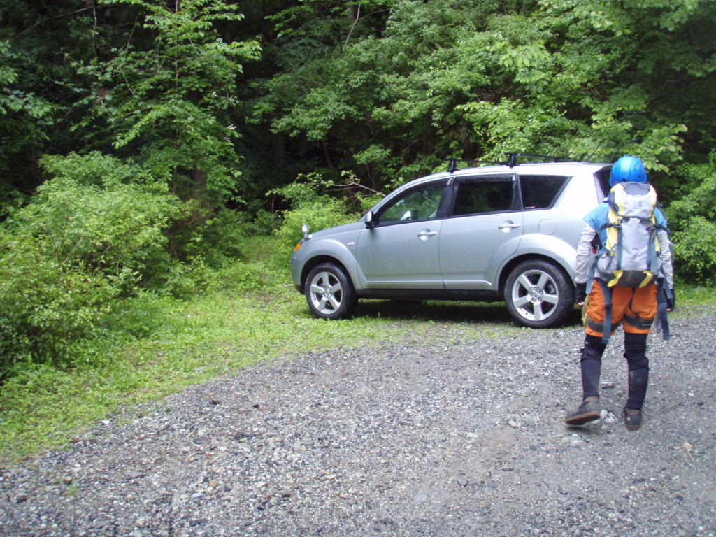 | ヌタハラ林道に入った最初のカーブで駐車 | 3条5m滝は右端の滝を直登 |