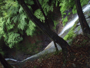 | 夫婦滝上段70m | 高巻き中から夫婦滝上段70mを見下ろす |
