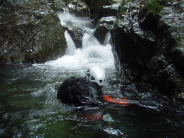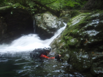 2条4m滝はとがちゃんと交互にチャレンジするが流れが強くうまくいかない。