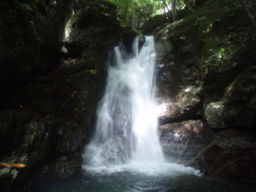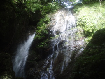 3条5m滝。前回は右端の滝を登ったのだが今日の水量では断念。右から巻き上がる。