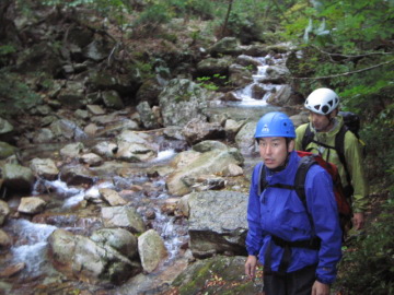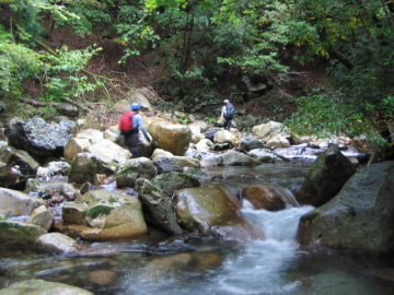| 坊村(9:55)---牛コバ(10:20)---4段40m滝(10:45)---遡行終了点(12:00/13:05)---牛コバ(13:25)---坊村(13:55) |