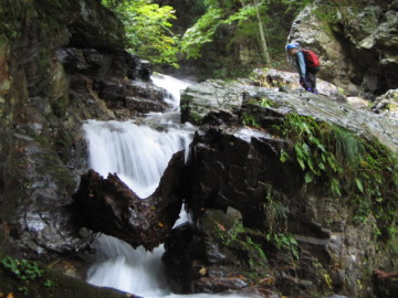 | 斜瀑5mはつっぱりで^-^ | 登山道が横切ったところで遡行終了 |