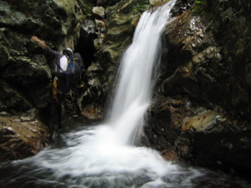 | 斜瀑8m 滝身を登る。。 寒い | 12m滝は滝右を快適に登る |