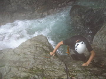 | 4m滝は左壁を空身で登る | 登るヤマト氏 |