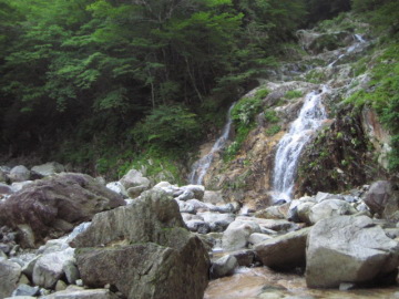 | 7/8 大栂山登山口(6:00)---フジノトコ(8:10)---火吹谷出合(10:20)---水晶谷出合(13:10)---口剣又谷出合(14:15)---1060m付近二俣(15:15) |