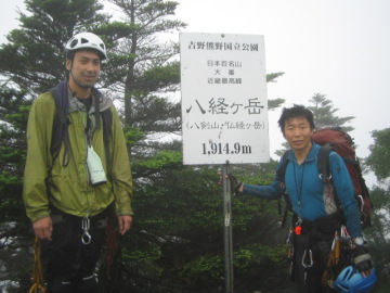 | 7/9 テン場(6:15)---1200m付近二俣(6:35)---10m滝(8:40)---八経ヶ岳(10:05)---弥山小屋(10:35/10:45)---行者還トンネル西口(12:00) |