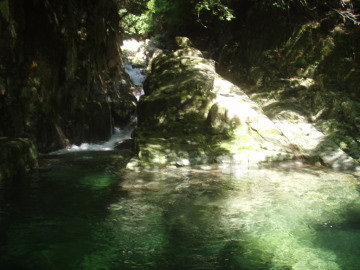 谷が右に曲がるところでひと泳ぎ。さむっ(>◇<)