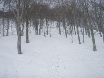 | 広い雪原に出る | 雪原をたらたら登る |