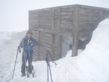 | 大渚山の頂上小屋 | 下りは雨でぐずぐずの悪雪だった |