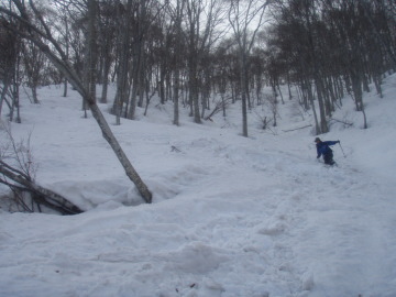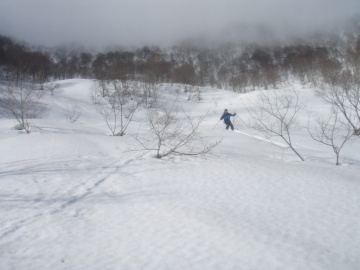 | もう少し積もれば気持ちの良いオープンバーン | 滑りにくくて今日は苦労しました |