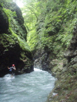 | 1m滝は右から高巻く | 最狭部の不通 |