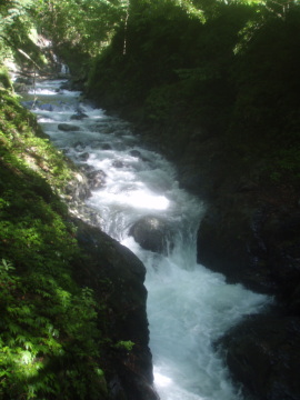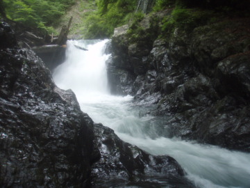 | 釜渕5m滝は左から巻いた | 連瀑のゴルジュは右から高巻く |
