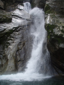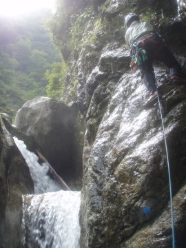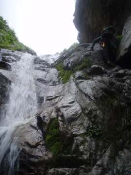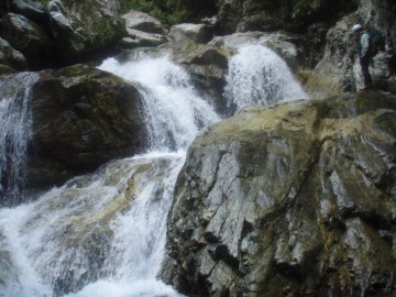 | 右壁からロープを出して越えた | 3段30m滝 |