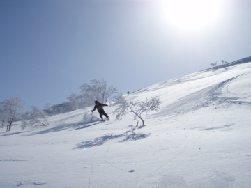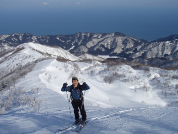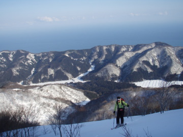 | 北西尾根下をトラバース | 日本海に向かって滑降 |