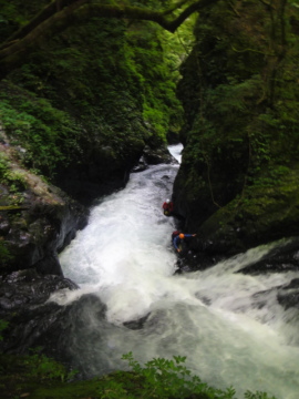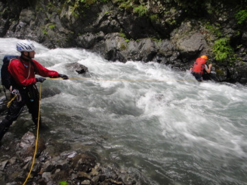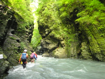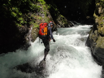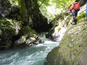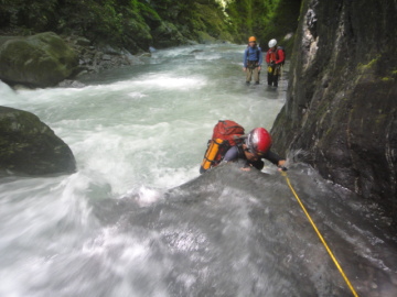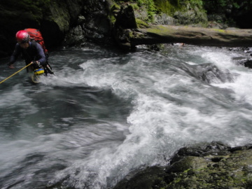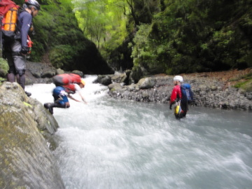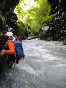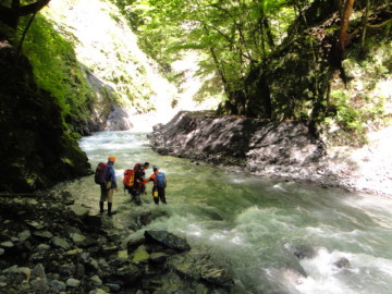 | 5mのゴルジュ滝 | ゴルジュ内の徒渉 |