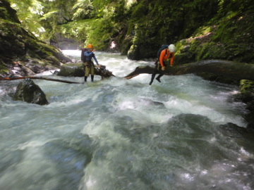 | 流木に掴まって徒渉 | 流木をまたいで徒渉 |