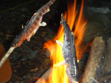 | やまとイワナの塩焼きをいただく | 快適なテン場 |