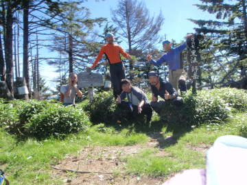| 傾斜が強まる中を登って行く | 黒法師岳のてっぺんにて |
