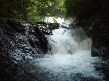 | 入渓点付近 水多いなあ〜 | 1m斜瀑と続く2条2m斜瀑 |