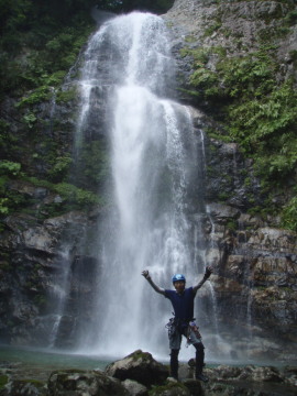 | すばらしい2段30m滝 | CS4m滝は左壁を直上 |